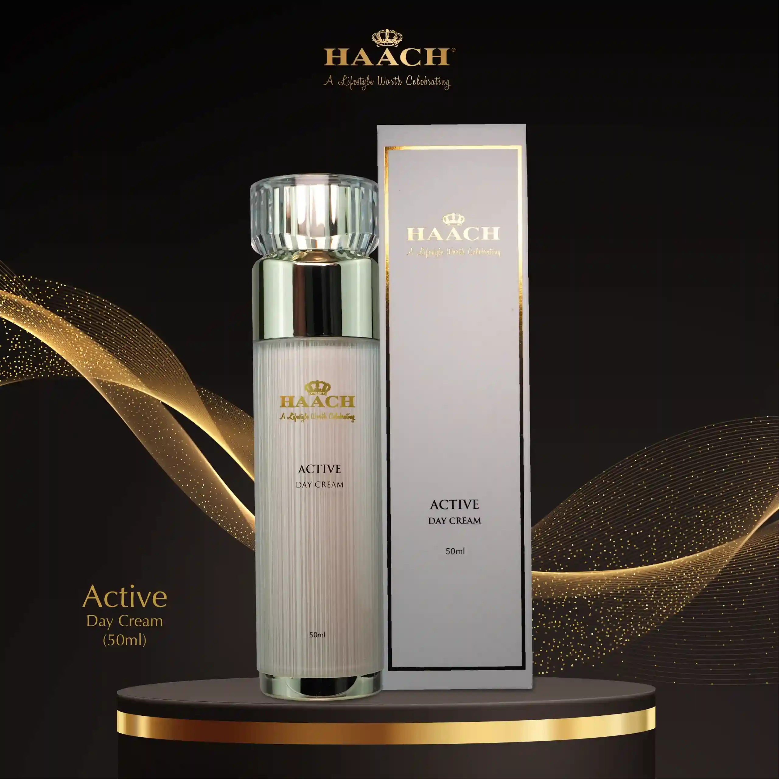 HAACH’s Active Day Cream’s revolutionary lightweight formula rejuvenates the skin. Its anti-oxidant, anti-ageing and anti-inflammtory properties keep the natural balance of the skin in check and noticeably reduces the skin’s sensitivity. It also gently encourages collagen and elastin formation while evening out and softening the skin as well as inhibit the formation of pigmentation.